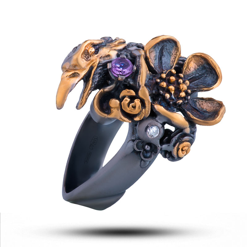 Кольцо с натуральными камнями «Птица» Бренд «Denisov & Gems» Vida Maestro, Испания