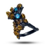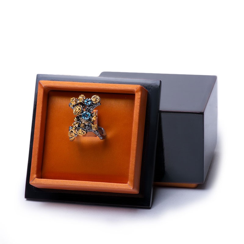 Драгоценный камень топаз Оправа серебро, покрытие черный родий, золочение