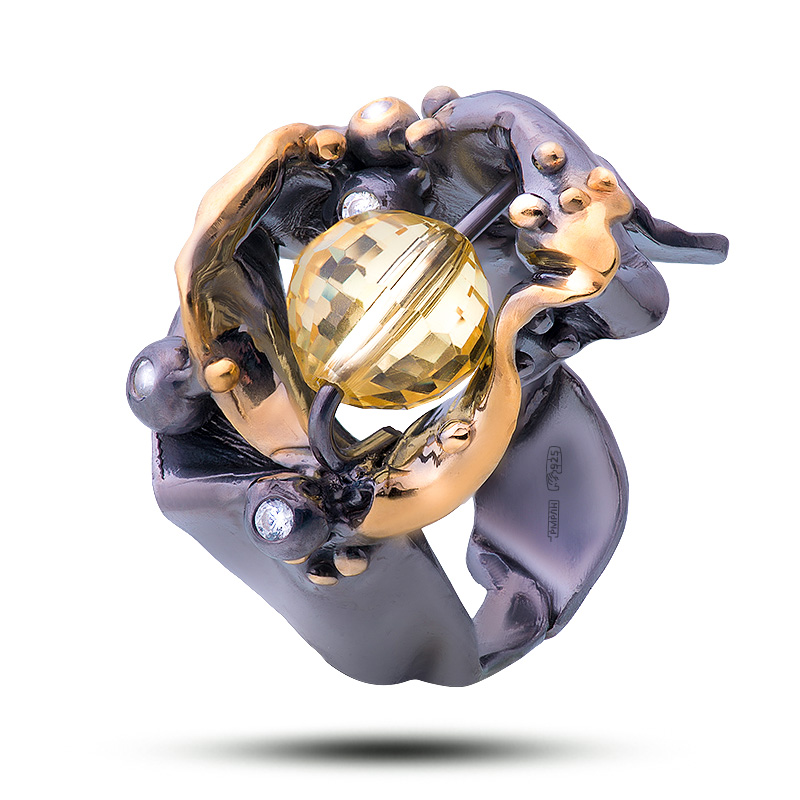 Авторское кольцо Denisov & Gems с натуральным камнем раухтопаз