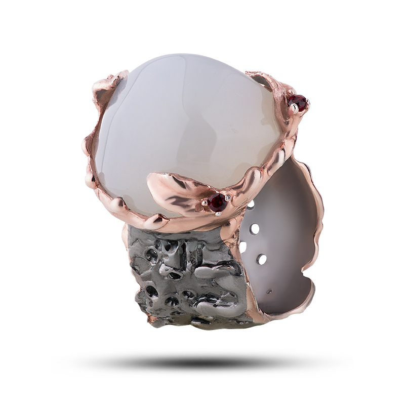Кольцо с камнями молочный кварц и гранат, 79725