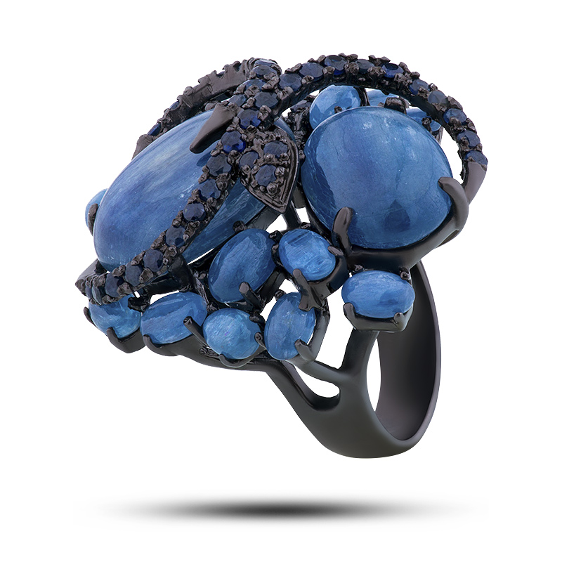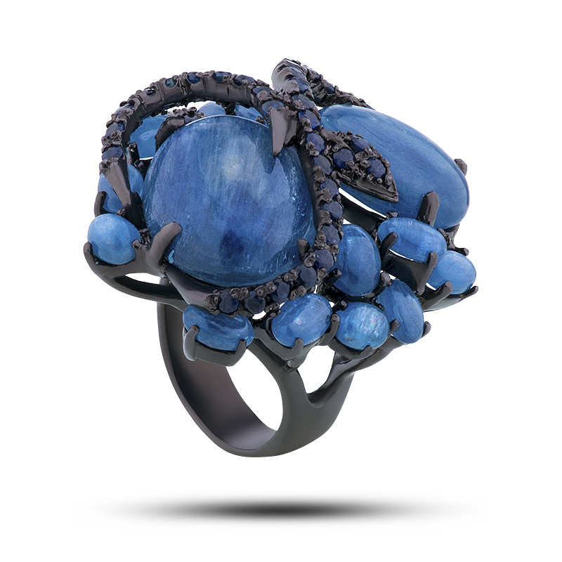 Кольцо, камни кианит, сапфир, размер 17,25