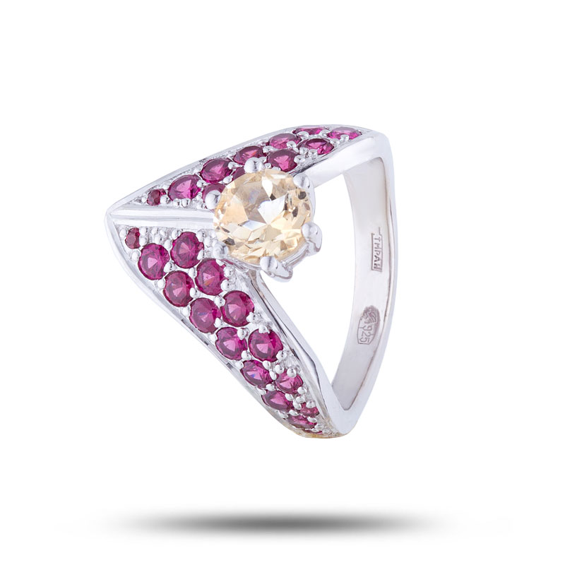 Кольцо "Тайна Клеопатры", камни родолит, цитрин, размер 18