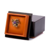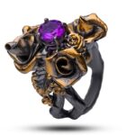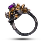 Драгоценный камень александрит Оправа серебро, покрытие черный родий, золочение