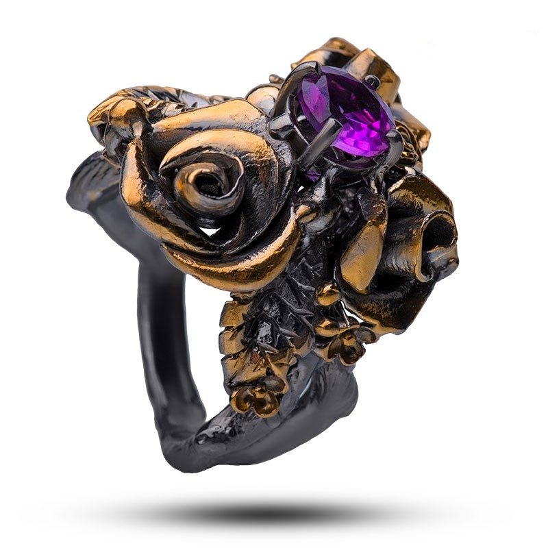 Кольцо 925 «Три розы», натуральный камень аметист