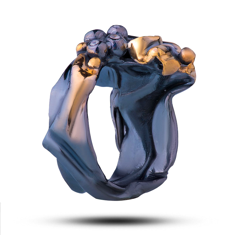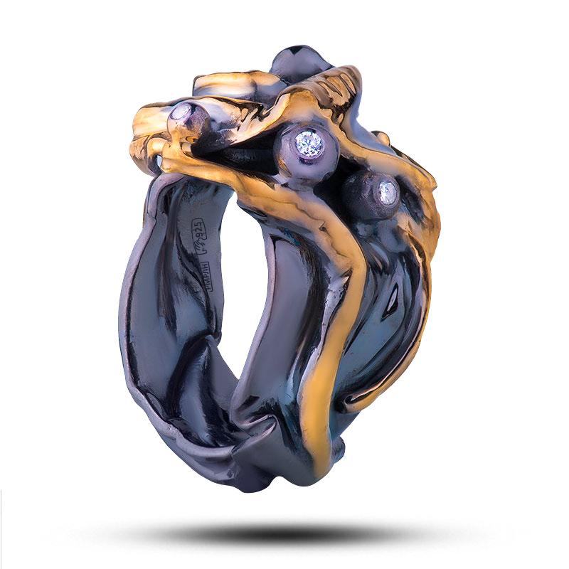Драгоценный камень фианит Оправа серебро, покрытие черный родий, золочение;