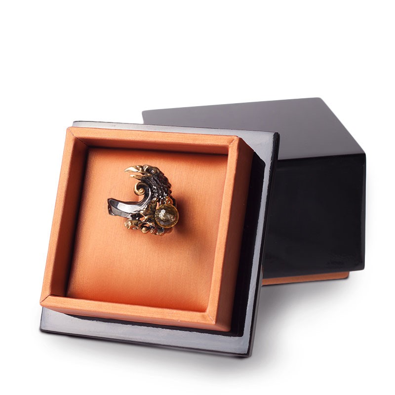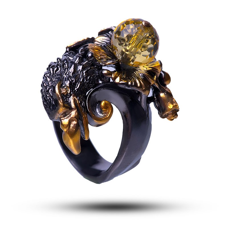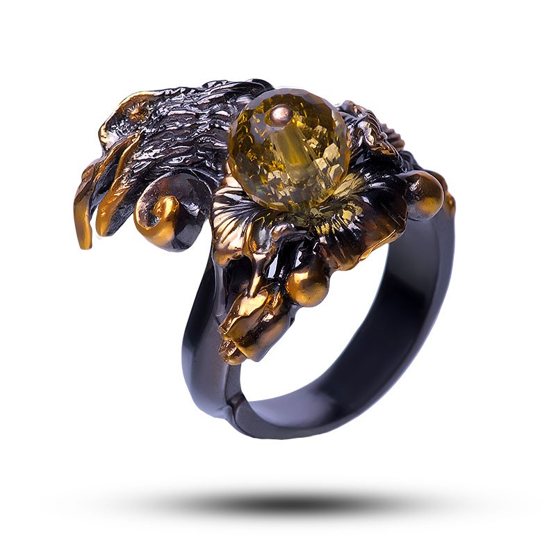 Кольцо "Ворон", камень цитрин