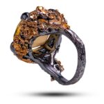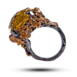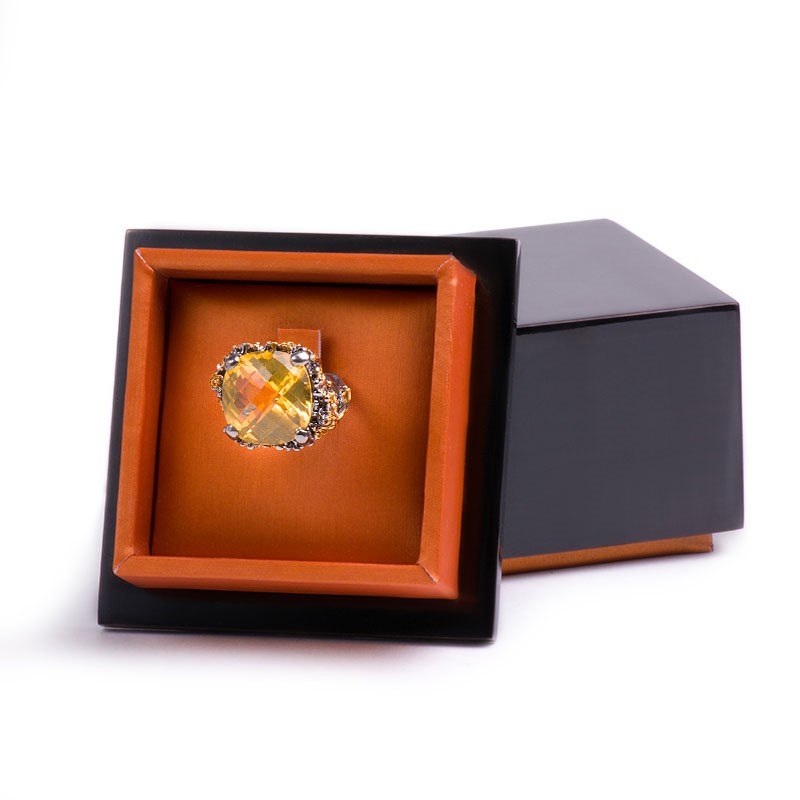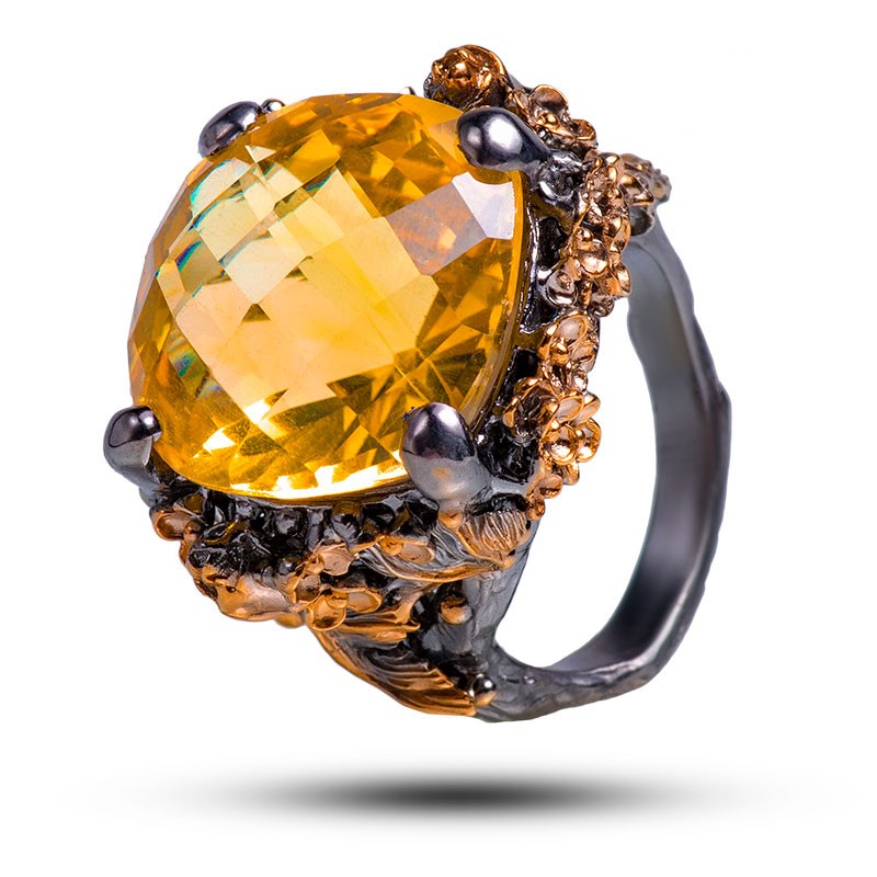 Драгоценный камень цитрин Оправа серебро, покрытие черный родий, золочение