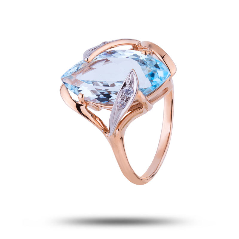 Кольцо золотое с топазом и фианитом, размер 17,5
