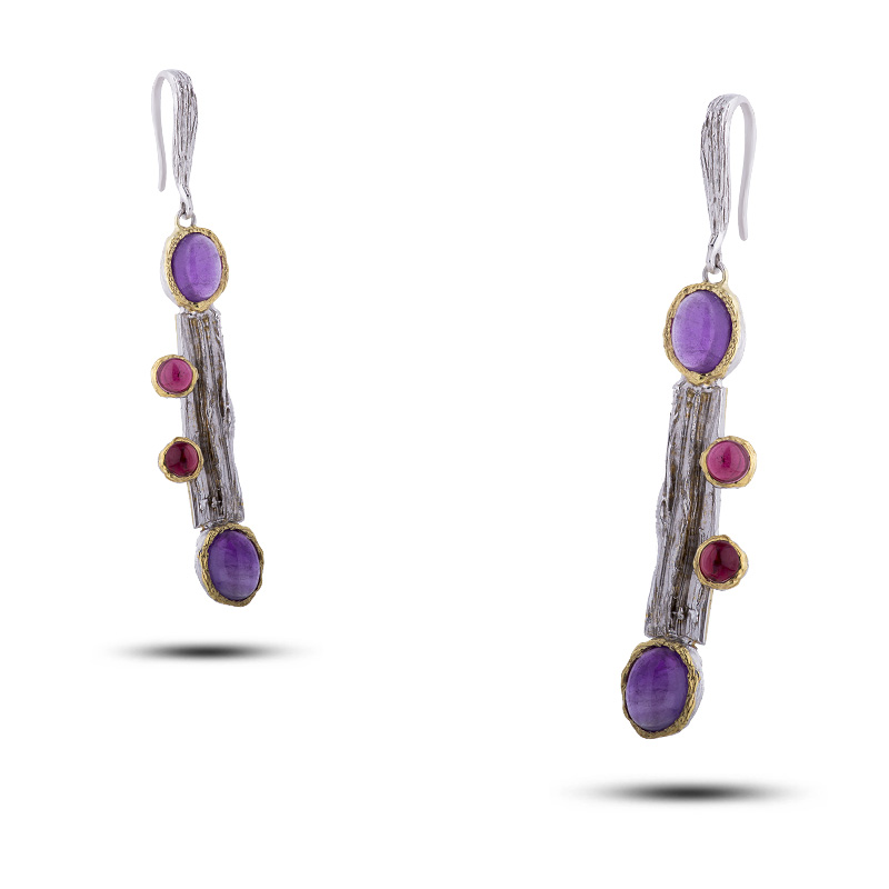 Серьги с камнем аметист, гранат, 11,51г
