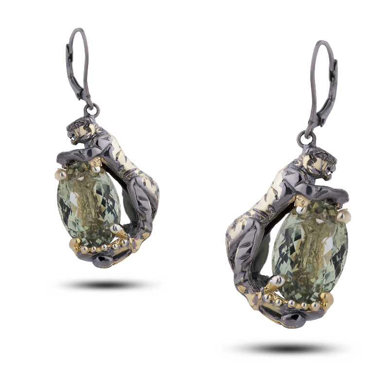 Серьги с камнем празиолит, 23,64г