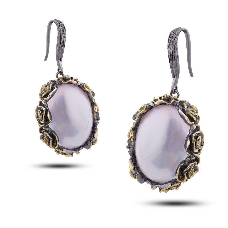 Серьги с камнем розовый кварц, 30,41г