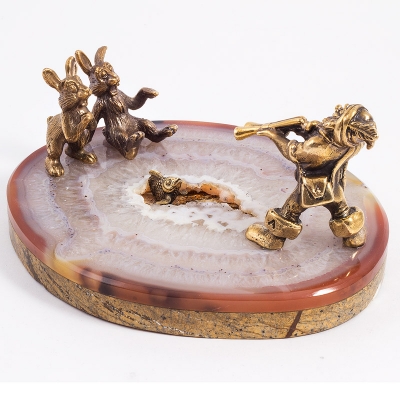 Фигурка "Гном охотник" из камней агат, мрамор, 115 мм