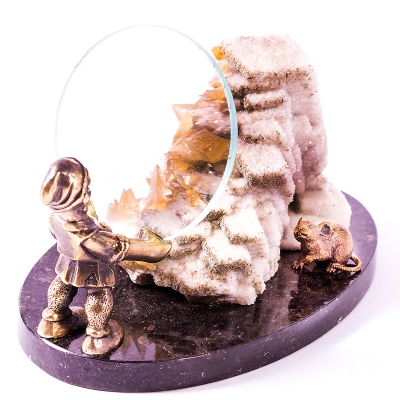 Фигура "Гном с лупой", драгоценный камень Кальцит, мрамор