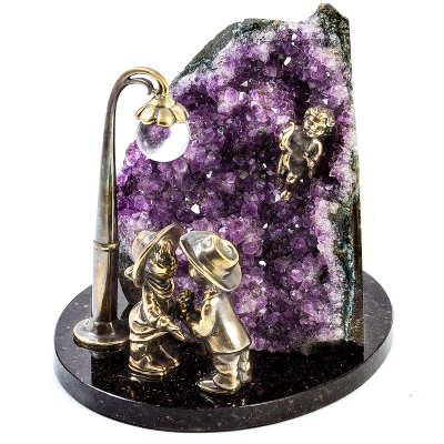 Фигурка "Влюбленные под фонарем" из камня аметист, 125 мм