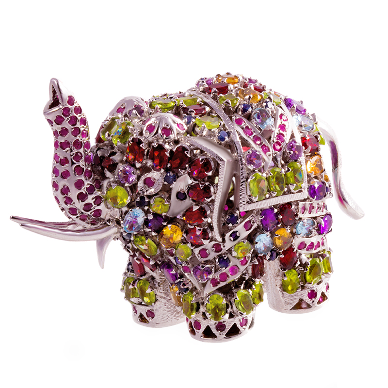Фигурка "Слон" из камней топаз, рубин, аметист, сапфирин, хризолит, гранат, цитрин