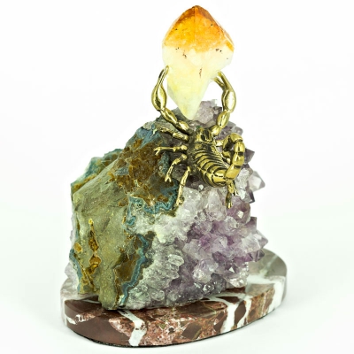 Фигурка "Скорпион с цитрином", камни аметист, цитрин, 130 мм