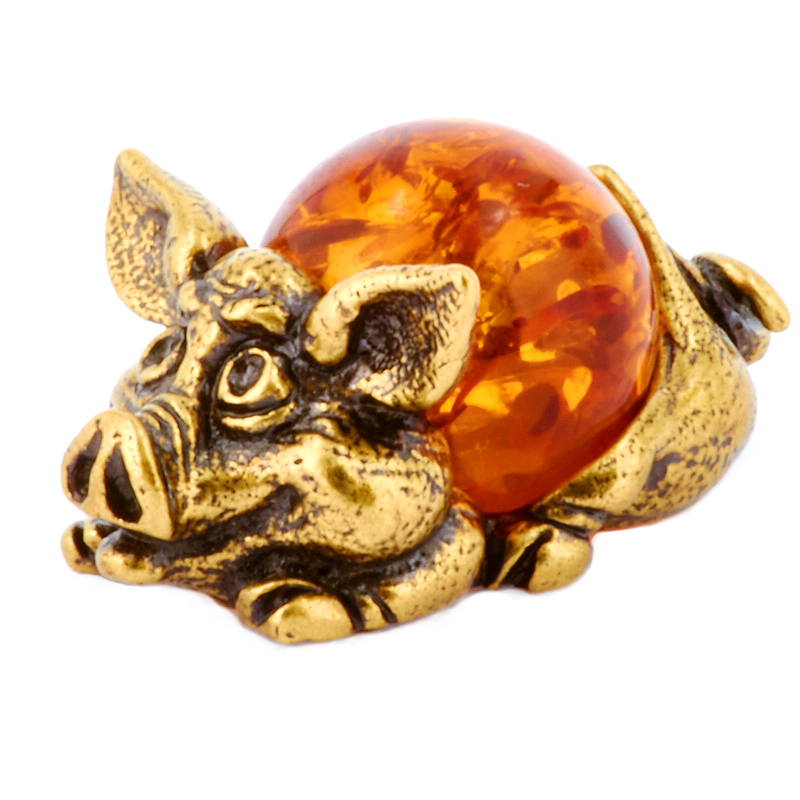 Фигурка "Хрюша" из янтаря Литье бронза