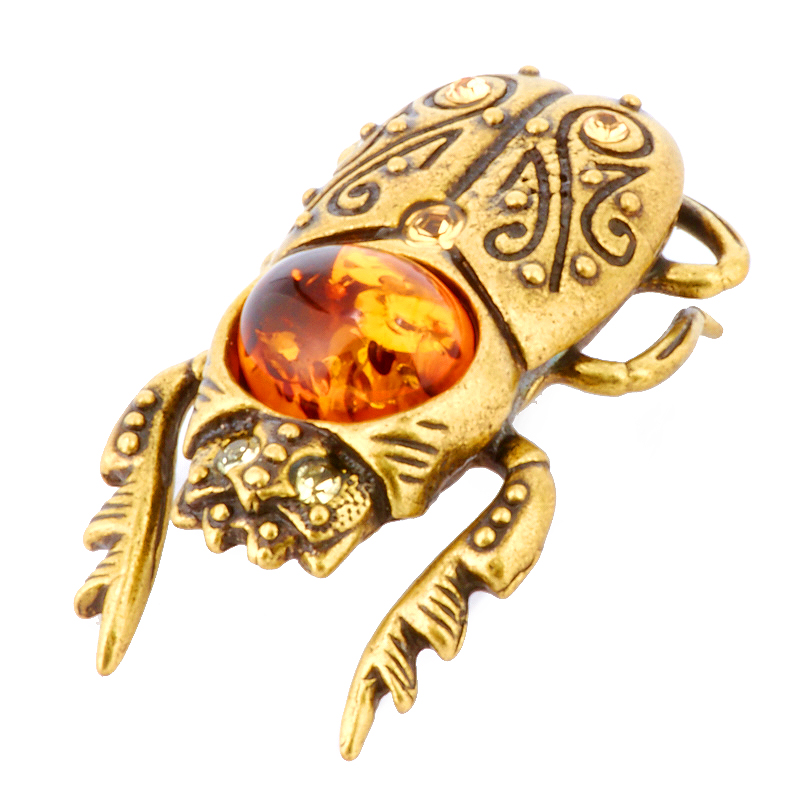 Фигурка "Скарабей" Драгоценный янтарь Литье бронза