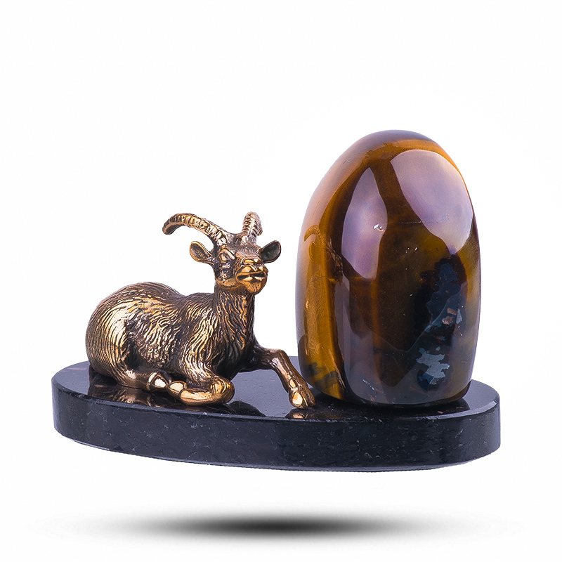 Фигурка "Бронзовый козел", камень тигровый глаз