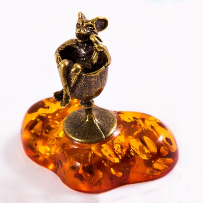 Фигурка "Мышь в рюмке", янтарь, литье бронза