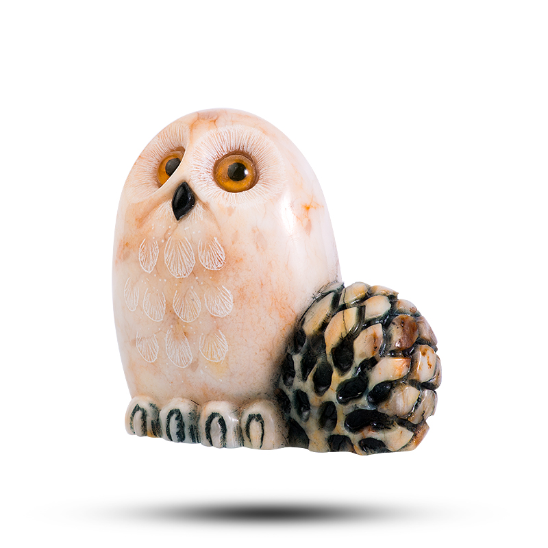 Фигура из природного камня «Совенок» Драгоценный камень кальцит Высота: 70 мм; Ширина: 75 мм