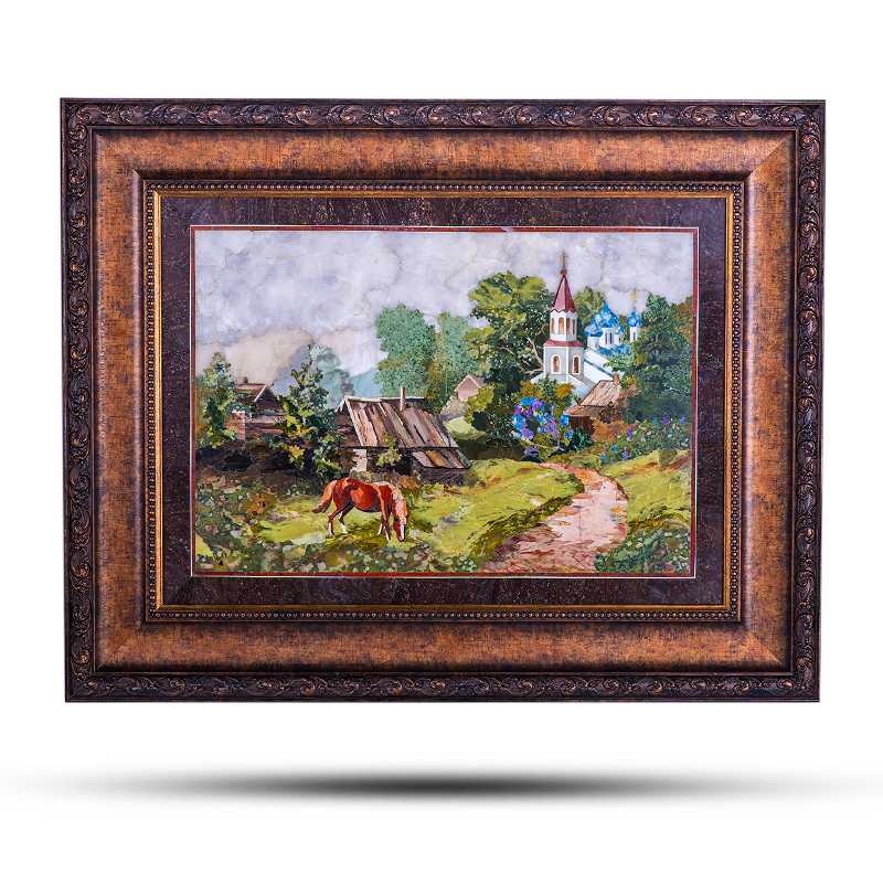 Картина из натурального камня «Дорога к церкви» в стиле флорентийской мозаики