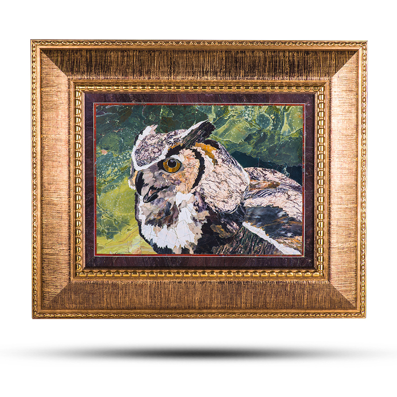 Картина из натурального камня «Сова» в стиле флорентийской мозаики