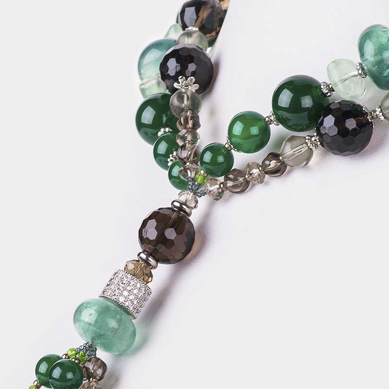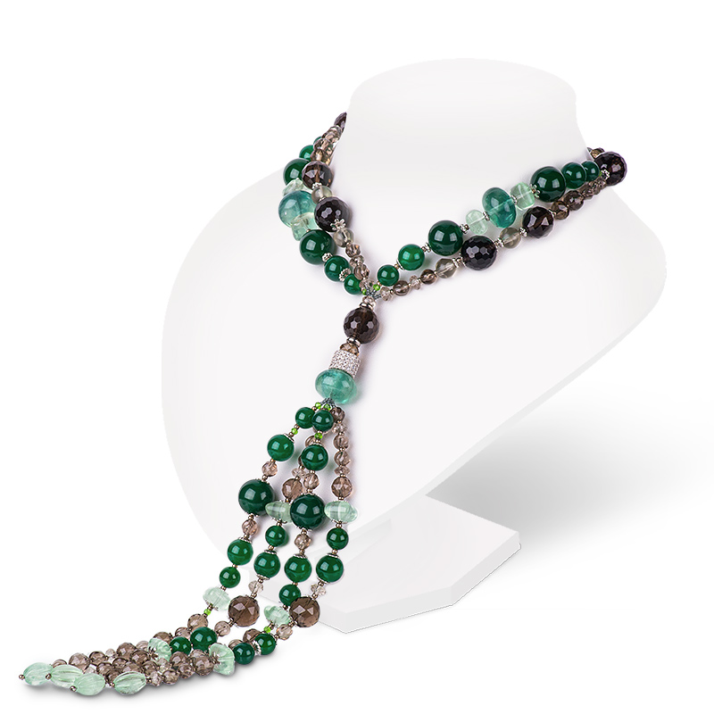 Галстук "Амадея", камни хризопраз, флюорит, раухтопаз, 110 см