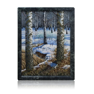 Картина «Зимний пейзаж» Драгоценный камень мрамор, хризолит Ручная работа