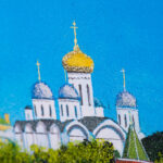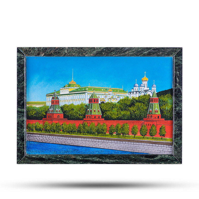 Картина "Кремлевская набережная", камни змеевик, мрамор