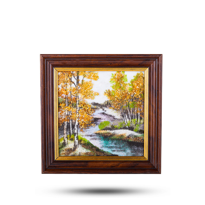 Картина «Осенний пейзаж» Драгоценный камень мрамор, цитрин Ручная работа