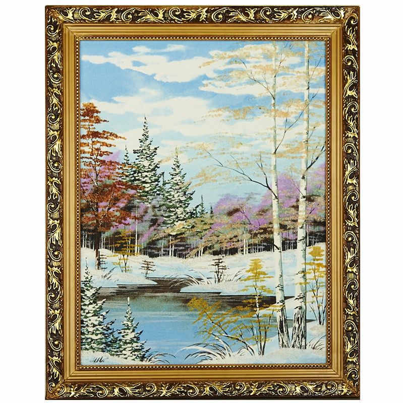 Картина «Зимний пейзаж» Драгоценный камень мрамор, хризолит Ручная работа