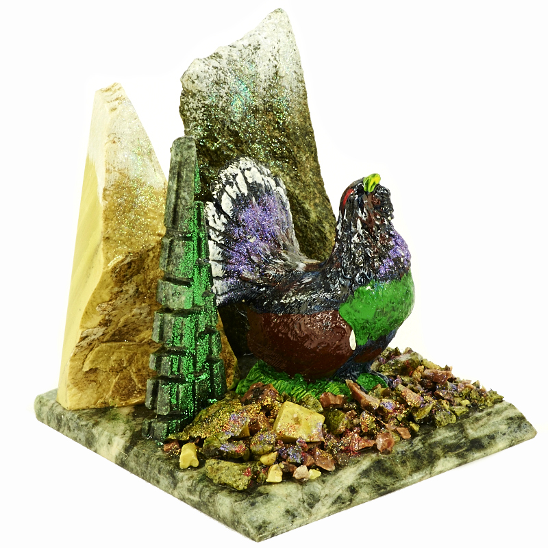 Композиция из камня "Глухарь" Драгоценный камень змеевик, литьевой мрамор