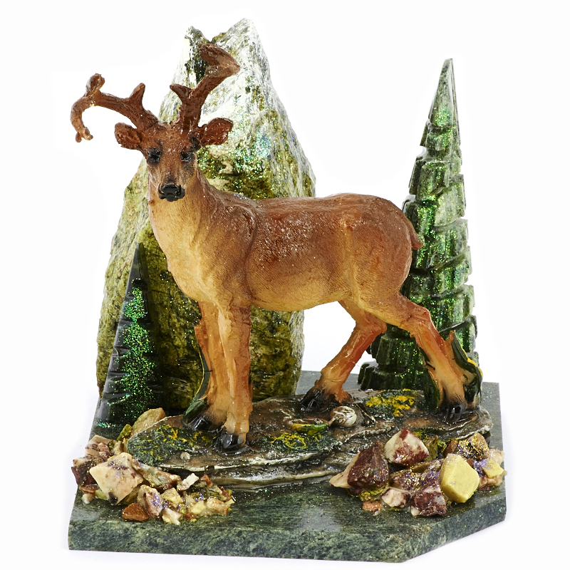 Композиция из камня "Олень" Драгоценный камень змеевик, литьевой мрамор