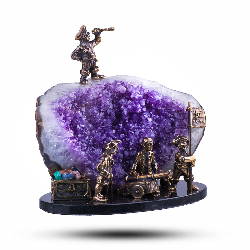 Фигурка "Пираты" из камня аметист, основание празиолит