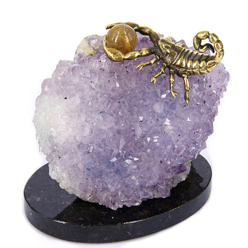 Фигурка "Скорпион на аметисте", камни аметист, цитрин