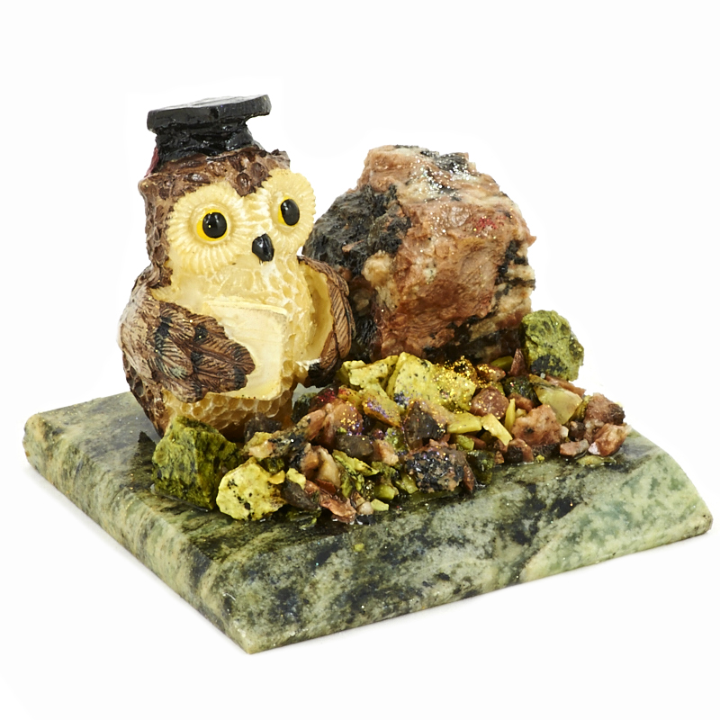 Композиция из камня "Сова" Драгоценный камень змеевик, литьевой мрамор