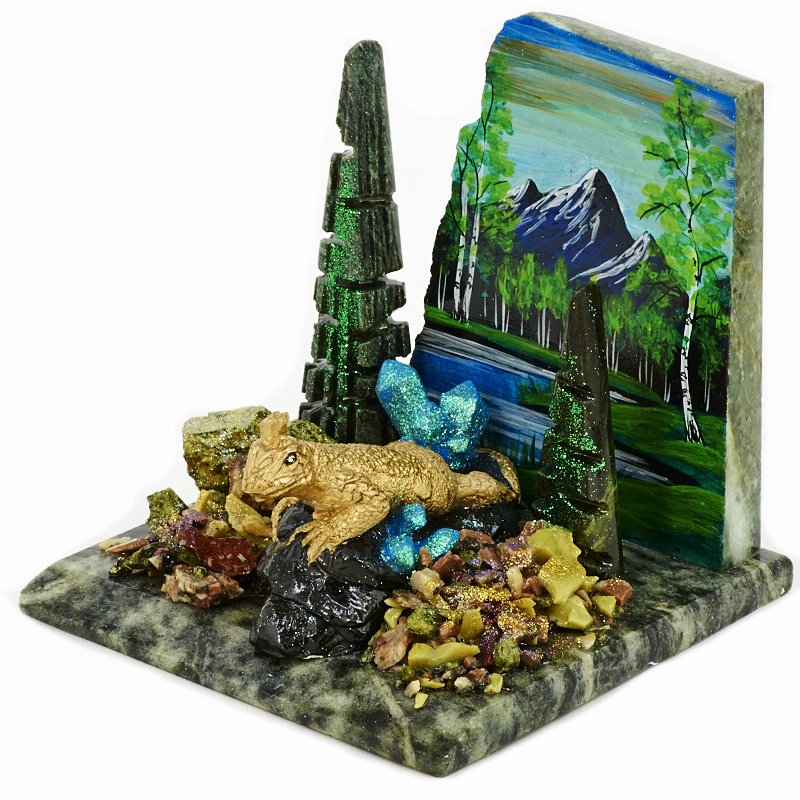 Фигурка "Ящерица", камни змеевик, мрамор, празиолит