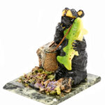 Фигурка "Медведь с рыбой", камни змеевик, литьевой мрамор