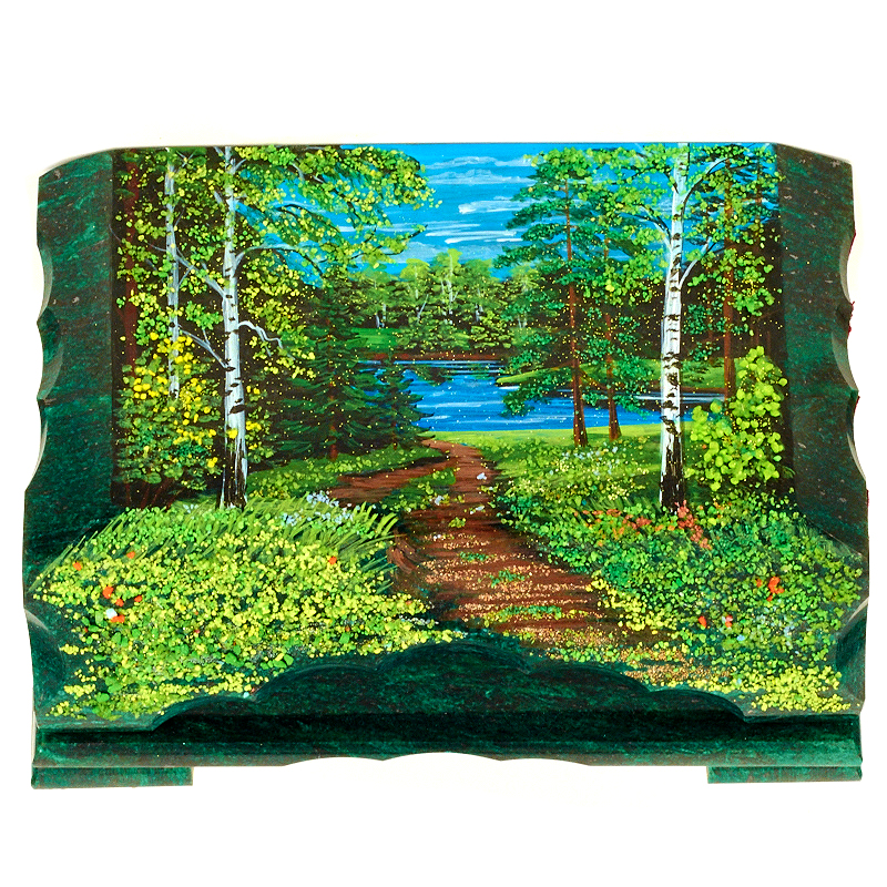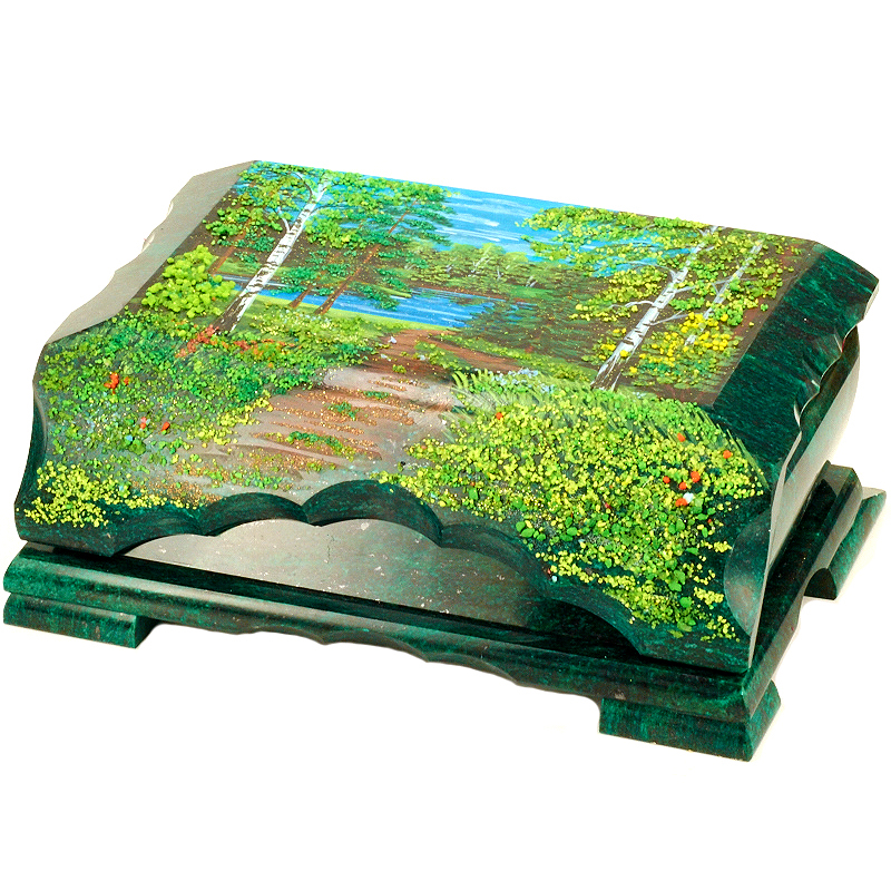 Ларец "Лесное озеро", камень змеевик, 20 см