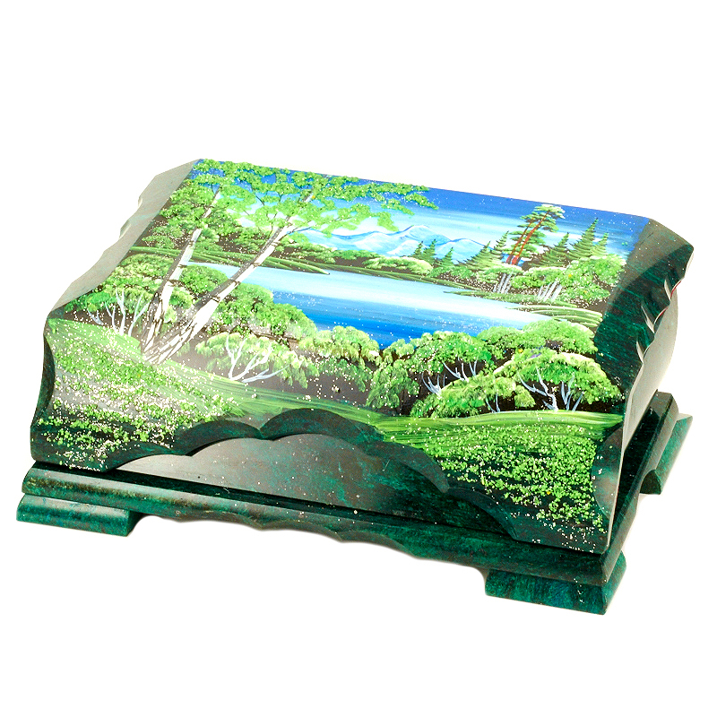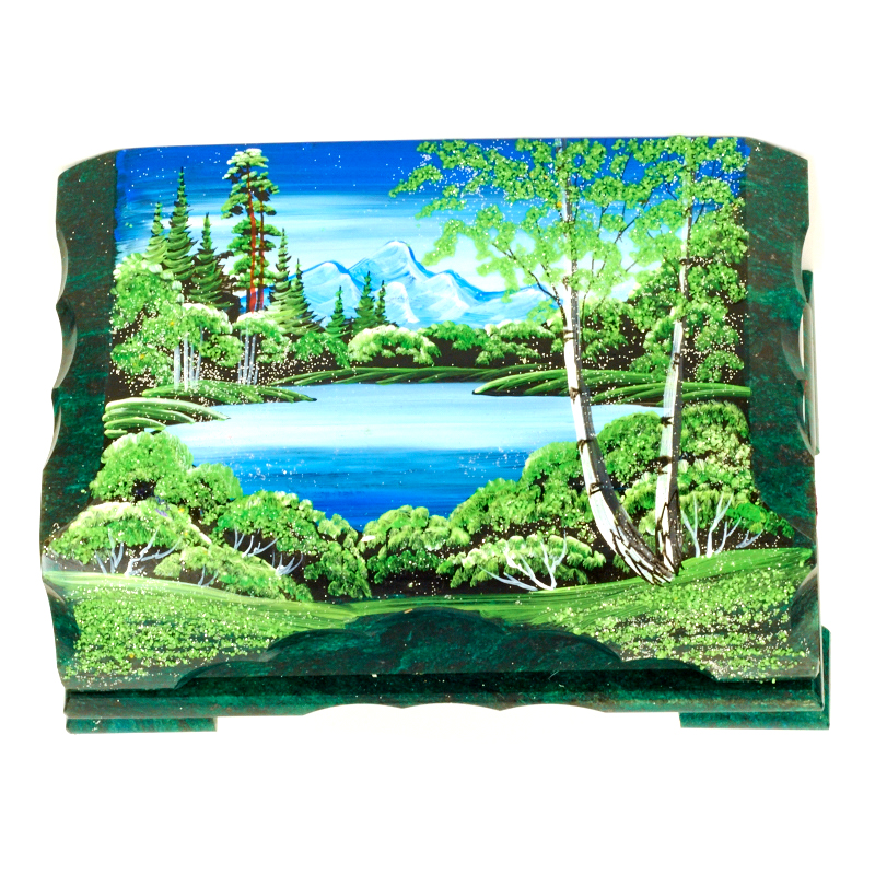 Ларец "Озеро в лесу", камень змеевик