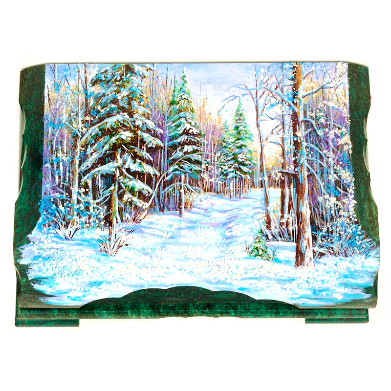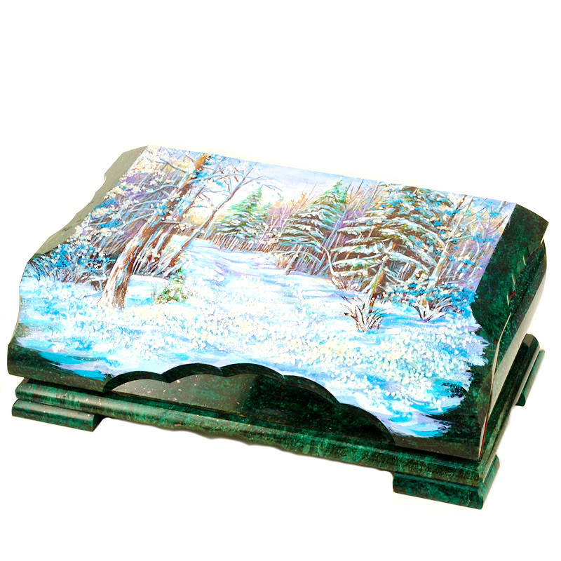 Ларец "Зимний лес", камень змеевик, 24 см