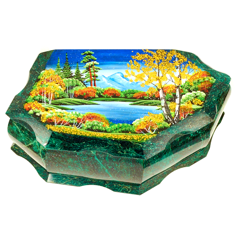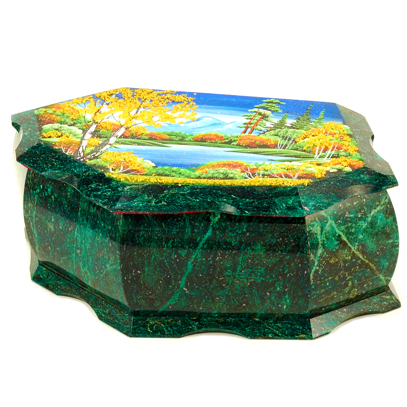 Ларец "Ранняя осень", камень змеевик, 20 см