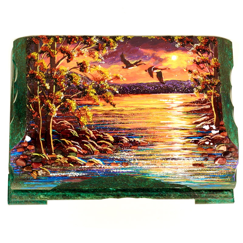 Ларец "Закат", камень змеевик, 24 см