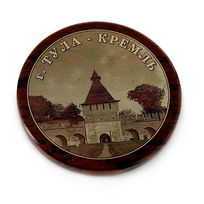 Магнит на холодильник "Тула - Кремль", камень обсидиан, 50 мм