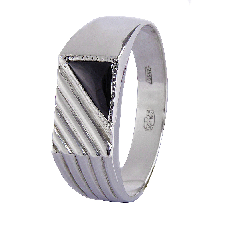 Мужское серебряное кольцо с натуральным черным агатом, арт-76361. Оправа — серебро 925 пробы. Представлено в размере 23, но размер может быть изменен нашими ювелирами бесплатно.