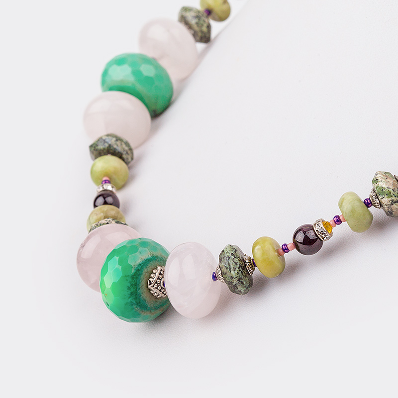 Ожерелье "Букет", камни хризопраз, розовый кварц, клинохлор