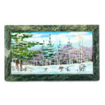 Панно из камня "Зима", камни змеевик, кахолонг, малахит, 14*24 см