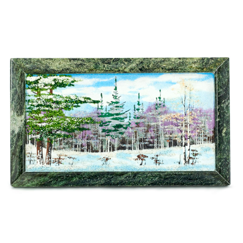 Картина «Зимний пейзаж» Драгоценный камень мрамор, хризолит Ручная работа
