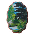 Панно "Сосна на берегу", камни змеевик, чароит, малахит, 25*17 см